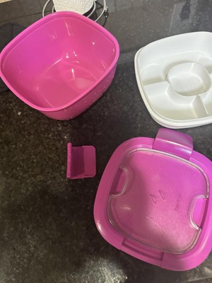 Compartment Tray for Toppings & Snacks: With one large 10-ounce compartment and two smaller 5-ounce compartments, the compartment tray easily configures to hold three or more salad toppings or snacks.