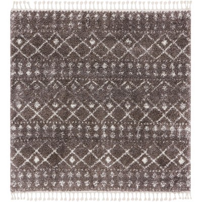 Berber Fringe Shag BFG516 Power Loomed Indoor Area Rug - Brown/Ivory - 6'7"x6'7" - Safavieh