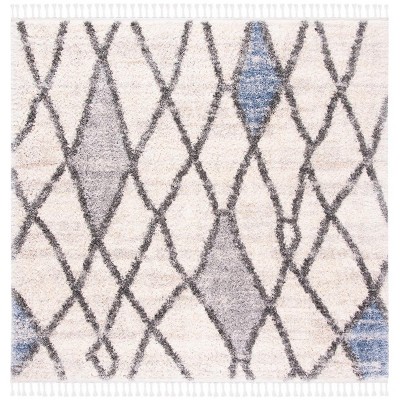 Berber Fringe Shag BFG516 Power Loomed Indoor Area Rug - Navy/Ivory - 6'7"x6'7" - Safavieh