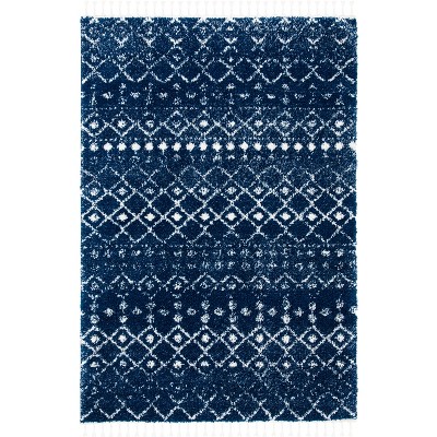 Berber Fringe Shag BFG519 Power Loomed Indoor Accent Rug - Cream/Blue - 3'3"x5'3" - Safavieh