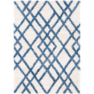 Berber Fringe Shag BFG519 Power Loomed Indoor Accent Rug - Cream/Blue - 4'x6' - Safavieh