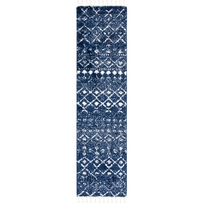 Berber Fringe Shag BFG519 Power Loomed Indoor Runner Rug - Cream/Blue - 2'2"x8' - Safavieh