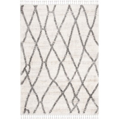 Berber Fringe Shag BFG611 Power Loomed Indoor Accent Rug - Cream/Grey - 4'x6' - Safavieh