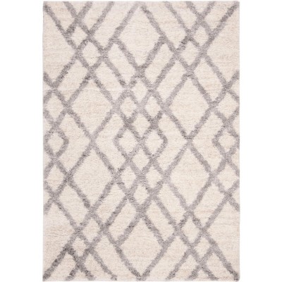 Boasting a sophisticated Shag & Flokati style, our rug invites comfort and warmth into any room. The alluring pattern displayed in the image showcases a harmonious diamond lattice design that provides a modern yet classic appeal that coordinates seamlessly with a range of interior decors. Each step on this rug offers a soft, shaggy texture that pampers your feet and adds an inviting layer to hardwood or tile floors.