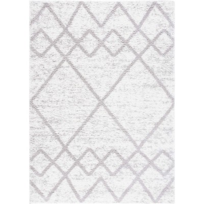 Embodying sophistication in a harmonious blend of LIGHT GREY and CREAM, the chic Shag & Flokati style of this rug adds a touch of elegance to any room. Its eye-catching pattern, visible in the image provided, showcases an intricate diamond motif that exudes both modernity and timeless appeal.