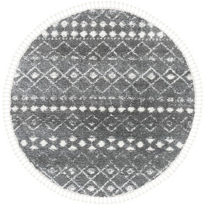 Introducing our chic and cozy area rug, a perfect accent piece to complement any room. Crafted in Turkey with the finest materials, this round 3' x 3' rug boasts a plush height of 1 1/8" for ultimate comfort underfoot. The light grey and cream hues of the rug are woven in a harmonious design that adds a touch of elegance and warmth to your space.