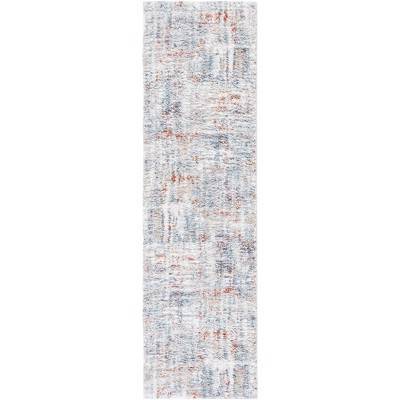 The runner's captivating pattern, showcased in the image, weaves together serene blues, warm rust, and soothing ivory tones, creating an abstract expression that's both modern and timeless. This piece will add an artistic statement to any room while seamlessly blending with various decor styles, from the ultramodern to the subtly classic.