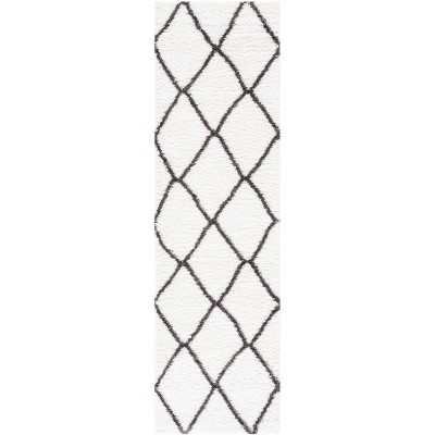 The serene ivory base is gently complemented by tasteful grey accents, forming a diamond trellis design that is both visually appealing and easy to integrate into various color schemes. This runner's shaggy texture and neutral palette make it a timeless accessory for your home.