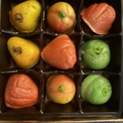 Savor the charm of Bergen Marzipan M-43 9-Piece Assorted Fruit. This delightful collection features nine almond-flavored marzipan pieces in colorful, playful fruits— perfect for gifting, sharing, or treating yourself.9 Piece Assorted Fruit 4oz