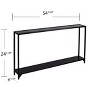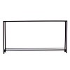 Add a touch of glam to any space with the shine of high gloss black and glass in this anywhere console. Simple, sleek silhouette with clear glass top shelf and black glass bottom shelf creates two tiers of storage, enhancing formal and casual spaces. Narrow metal and glass media console adds drama under your wall mounted TV. Create a memory vignette with photos and mementos on your sofa table, or shine a spotlight to a focal wall. This slim anywhere console stops the show in your home.