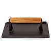 Neo Cast Iron 9" x 5" Bacon/Steak Press is crafted from high-quality cast iron steak press with a stay-cool bamboo handle, designed to elevate your cooking experience to new heights. Crafted with precision and durability in mind, this steak press is a must-have tool for any culinary enthusiast or professional chef. The cast iron construction ensures even heat distribution, allowing you to achieve perfectly seared steaks every time. The stay-cool bamboo handle not only adds a touch of elegance to the design but also provides a comfortable grip, ensuring your safety while handling the press. Our cast iron steak press is not only ideal for cooking steaks but also for grilling vegetables, sandwiches, and paninis. The weight of the press helps to flatten the food, resulting in even cooking and enhanced flavors. The ridged surface of the press creates beautiful grill marks, adding a professional touch to your dishes. With its sturdy construction and timeless design, this steak press is a versatile and long-lasting addition to your kitchen arsenal.
