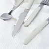 Elevate your dining experience with our Leo Balance 24pc flatware set, crafted from durable stainless steel, each piece combines sleek design with functionality. The dinner knives glide effortlessly through meals, while the dinner forks and spoons ensure a perfect bite every time. Complete your coffee or tea rituals with the teaspoons. Ergonomically designed ABS handles provide a comfortable grip, making each meal a delight. Perfectly designed to serve up to six people, this flatware set is ideal for family dinners, gatherings, and entertaining guests or even during everyday use or special occasions. This set is a must-have for any modern table setting. Available in Moonmist or Moonbeam. Set includes: 6x Dinner Knives 8.25", 6x Dinner Forks 7.75", 6x Dinner Spoons 7.75", 6x Coffee/teaspoons 5.75"