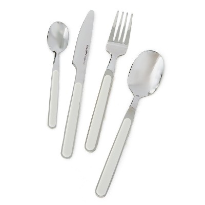 - This flatware set comes with stainless steel 6x Dinner Knives 8.25", 6x Dinner Forks 7.75", 6x Dinner Spoons 7.75", 6x Coffee/teaspoons 5.75" with long, ergonomic ABS handles.