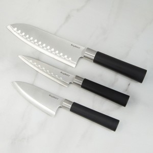 - Stainless steel 4.5" Santoku Knife, 5" Santoku Knife with Holes, 6.75" Scalloped Santoku Knife with comfort-grip, ergonomic PP handles.