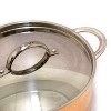 - Made of Non-reactive 18/10 stainless steel interior, aluminum core and hammered copper exterior that is quick to heat and even heating. Matching cover for energy-efficient cooking.