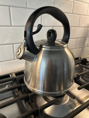 - Package includes: Whistling kettle 2qt., Silver body, black handle