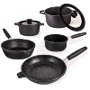 Includes: Fry Pan, 1.5 Quart Saucepan, 3.3 Quart Stockpot With Lid, 5 Quart Stockpot With Lid, 10" Saute Pan