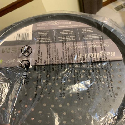 - Package includes: Non-stick Perforated Pizza pan 14.25" x 13.5", 1.1 qt., Round, Gray