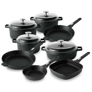 Includes: 8" Frying Pan, 11" Frying Pan, 10" Grill Pan, 5 qt. Stockpot With Lid, 5 qt. Stockpot With Lid, 5 qt. Stockpot With Lid, 11" Saute Pan With Lid