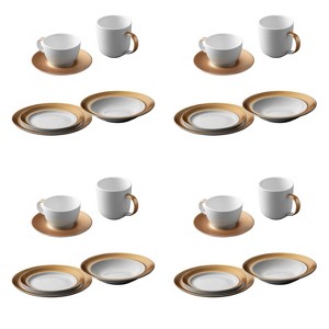 - Package includes: Porcelain 4x Deep Plate 9.75", 4x Large Plate 10.5", 4x Small plate 8.25", 4x Coffee Mug 0.35 Qt., 4x Tea Cup 0.23 Qt., and 4x Saucer 6.5", White & Gold