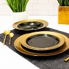 - Package includes: Porcelain Deep Plate 9.75", Large Plate 10.5", and Small Plate 8.25", Black & Gold