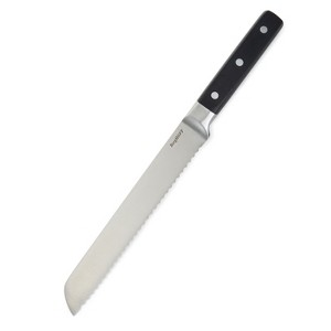 - The long, serrated blade allows for smooth, even slices through all types of bread without crushing its delicate, soft insides. This knife can also be used for cutting cakes, pastries, and even fruits and vegetables with tough skins.