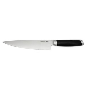 - MUST-HAVE IN ANY KITCHEN: Meat, vegetables, poultry, … the Leo chef’s knife cuts it all and thanks to the wide, sharp blade it’s also suitable for light cleaving jobs. Its hand-sharpened stainless-steel blade with an upward curved tip that allows rocking the knife for easy mincing on a cutting board.