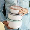 Homemade cookies, a crisp salad or ground coffee beans, with these practical and stackable containers, you can easily keep it all fresh and tasty! These covered bowls feature airtight seals that are leakproof for maximum freshness and optimal preservation of flavors and aromas. Bowls are dishwasher safe, microwave safe and freezer-proof.