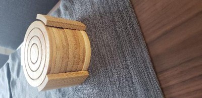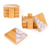 - Package includes: 14x Bamboo Square Coasters, and 1x holder, Natural