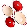 - Package includes: 10" Fry Pan, 11" Square Grill Pan, 8" Round Dutch Oven 3qt, 11.5" Oval Dutch Oven 5qt, 11" Round Dutch Oven 7qt, 13" Oval Dutch Oven 8qt, 4x Lids. Made with high quality, strong cast iron material and ergonomic handles. This set features a glossy base and an enamel coating, no pre-seasoning required.