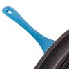 Neo 11" Blue cast iron fry pan is a kitchen staple that every ambitious home chef should have handy. Grill your heart out with one of these pans, they're great for creating strong, even heat and they season as you use them. Cast iron has great heat retaining abilities and can be used on any heat source. Classic in a modern design, solid material for all your cooking needs! Oven safe Up to 400 Fahrenheit Degree.