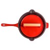 Neo Enameled Cast Iron is built to last for years to come. Crafted from durable cast iron with an enameled body this cookware heats up evenly and stays hot longer. The ergonomic handles provide a secure grip. The beautiful cast iron fry pan with its sturdy handle is another multipurpose tool in your kitchen arsenal. Use the fry pan to make succulent lamb chops, crispy bacon, and even a delicious cake. Fry pan has an integrated pour spout which allows you to easily drain any unwanted fat from the pan. Use the cast iron steak press to help evenly cook burgers, steak, chicken, and bacon. Our Neo cast iron cookware is suitable for all cooktops including gas, electric, ceramic, glass, and induction. Oven safe up to 535°F. You can sear your food on the stovetop, and finish in the oven. Please allow cookware to cool completely before attempting to clean. Handwash recommended with warm water and mild detergent; dry thoroughly. Avoid cleansers that contain bleach or citrus extracts. Set includes: 10" Frying Pan, Steak Press