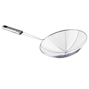 The wire skimmer is more than just an essential kitchen tool, you can skim sauces, strain soups, and plenty more. The defined blade designed for quick and efficient drainage when lifting fried or delicate foods. Made of high-quality and durable stainless steel that is for long lasting use and easy clean up. The long handle is to prevent you from burning. Hanging loop that allows for easy storage and minimal kitchen space.