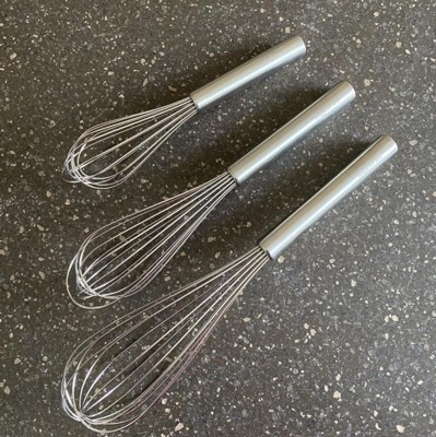 - Package includes: Stainless Steel Whisk 8", 10", 12", Silver