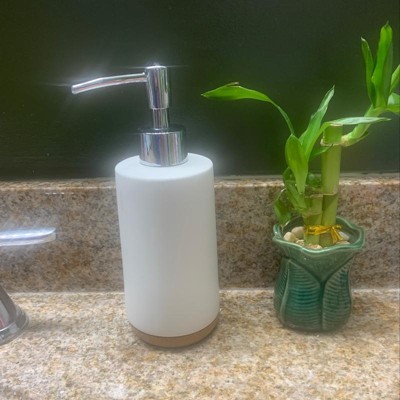 Give your bathroom a refreshing update with the Beringer Lotion Pump by Allure Home Creation. This classic shaped pump is made of ceramic in a clean matte white finish and is accented with a warm natural colored cork base. It is complemented with a removable plastic pump in a shiny chrome finish. Fill with your favorite liquid hand soap or lotion and push down on the pump to easily dispense just the right amount into the palm of your hand. This sophisticated piece with its neutral colors and minimalist design makes it a perfect fit with traditional to modern décors. Use alone or coordinate with other matching pieces in the Beringer Bath Accessory Collection. Hand Wash, Spot or Wipe Clean.