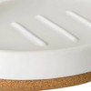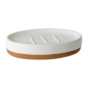- Refreshing matte finish soap dish in clean white with a warm natural colored cork base creates a sophisticated aesthetic that will easily blend with traditonal to modern décors