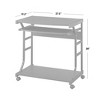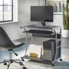 Maximize your office space with the Berkeley Computer Desk from Buylateral. Compact and accessible this desk provides everything within reach. The smart design features a spacious desktop that will accommodate your mouse and monitor, a sliding keyboard shelf and a lower shelf which is ideal for books and storage. Durably constructed with a gray steel powder coated frame and sturdy MDF shelves with PVC in a Black finish.