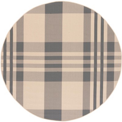 Transform your living space with this stylish round area rug. Measuring 6 feet 7 inches in both length and width, this 1/4 inch thick rug is a perfect addition to any room. Crafted in Turkey using a power loomed technique, its contemporary aesthetic is complemented by a sophisticated geometric pattern in a versatile shade of grey. Constructed from durable polypropylene, this rug combines functionality with ease as it is fully washable. The harmonious blend of design and practicality makes it an ideal choice for enhancing your home decor while maintaining a modern touch.