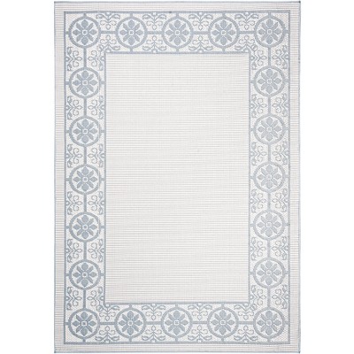 Bermuda BMU810 Machine Washable UV & Stain Resistant Non-Shedding Power Loomed Indoor/Outdoor Area Rug - Ivory/Blue - 5'3"x7'6" - Safavieh