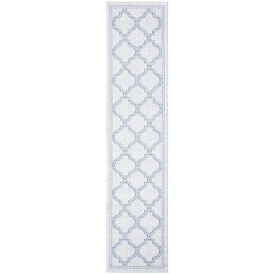 Bermuda BMU815 Machine Washable UV & Stain Resistant Non-Shedding Power Loomed Indoor/Outdoor Runner Rug - Ivory/Light Blue - 2'x8' - Safavieh