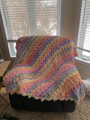 This bernat blanket yarn is so soft and fluffy but sturdy at the same time. The color ways are amazing. I’ve already worked a blanket in sunrise and springtime. I will warn that out of 12 springtime cakes I had one that had the color way reversed. Not a big deal as long as you catch it and work it from the outside in.