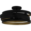Matte black and gold make a beautiful, modern industrial pairing in Berner. The semi-flush mount light features a geometric silhouette with concentric black metal bands, painted gold on the inside for a pop of shine. Hang this versatile design in a range of spaces: entryways, bathrooms, home offices, and more.