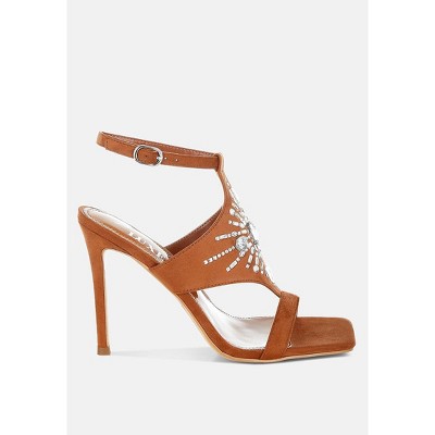 Berness Women's Charlize T-Strap Trapezoid Accent Slingback Heels