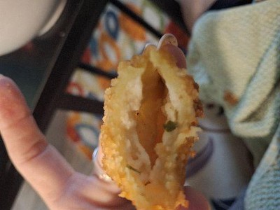 Yum! Breading is nicely seasoned and light cheese on the inside. Fried to perfection in the air fryer. I think 7mins at 400 would be perfect!