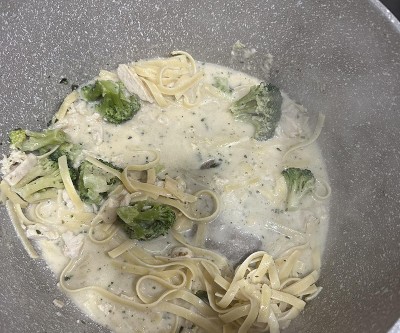 The sauce is very watery, and there’s very little noodles. There were also (too) huge chunks of broccoli. I made two bags, and my ten year old got one small bowl and my dad got one bowl. If you’re in a pinch with a small family, this might be okay. Taste-wise it was still good. If I made again I would add some more fettuccine noodles to the mix.