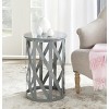 A bright and airy piece, the Bertram Accent Table is crafted of iron into an open lattice work design. Finished in high gloss grey, this fun and transitional piece brings an industrial chic element to room decor. Use Bertram in a living room or family room.