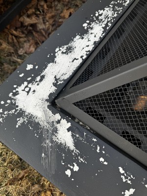 I have used this once, it sits in our yard surrounded by chairs as a fire pit would and in the space of a month all the paint has come off as you can see. Will be returning. Waste of $$$.