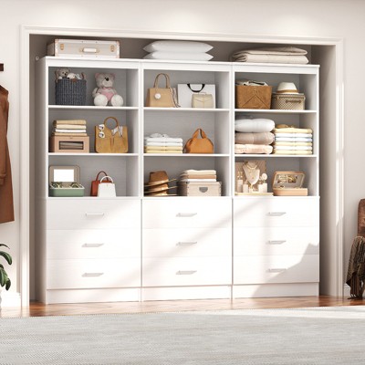Besiost 100-In Closet Organizer with Wood Drawers and Shoe Rack, Freestanding Closet System with Hanging Rods - White