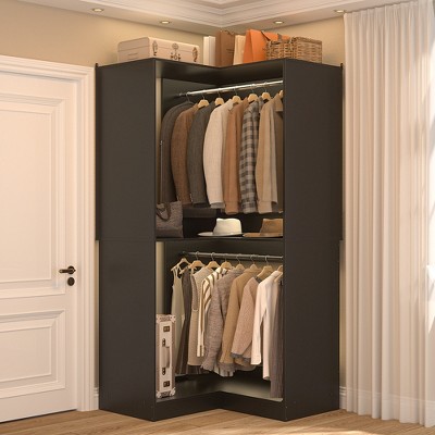 Besiost Closet Organizer System with Wood Drawers, 120-In Wardrobe with Hanging Rods and Storage Shelves- Black
