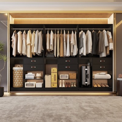 Besiost Closet Organizer System with Wooden Drawers, Freestanding Wardrobe with Hanging Rod